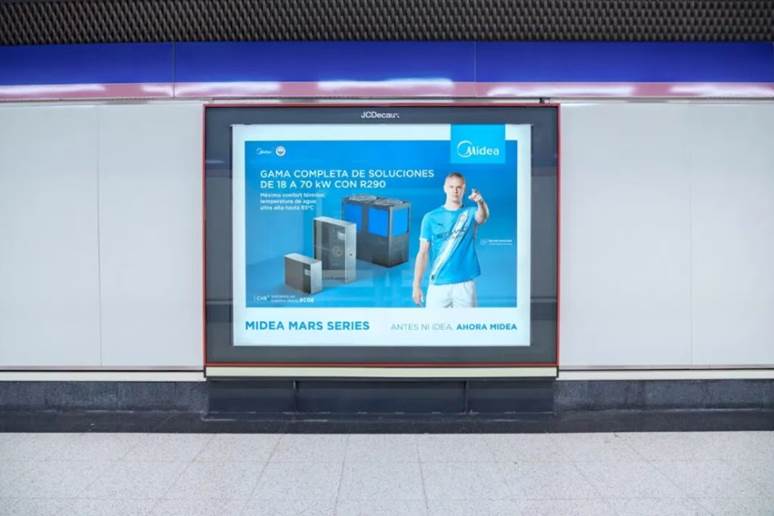 在展会期间,美的在马德里机场和机场地铁站Feria de Madrid 站点全面亮相,携手品牌全球代言人、足球巨星哈兰德掀起城市焦点。同时,现场还有与西甲塞维利亚足球俱乐部的互动环节,将体育激情与科技创新巧妙融合,为现场观众带来独特而充满活力的品牌体验。